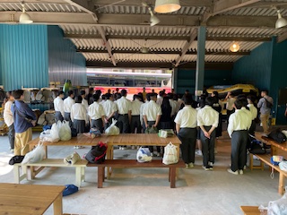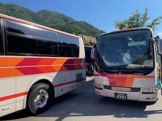 ラフティング、最後にインストラクターのみなさんにあいさつをして、バスに乗車しました。