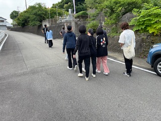 近くにある寺の鐘をついた帰りです。