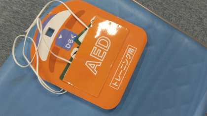 身近で人が倒れる場面に遭遇したときに迅速に行動に移すことができるように、胸骨圧迫とAEDの使用法について学びました。