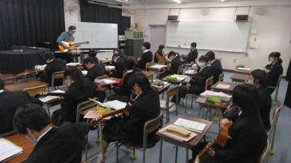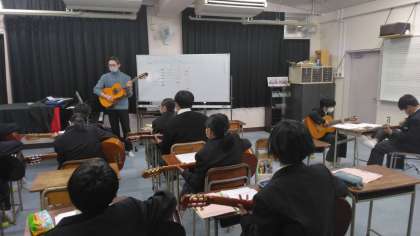 音楽の授業でギターの練習をしています。