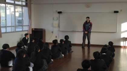 1年生の学年集会では、学年の先生の実家の話等、体験を交えたお話がありました。