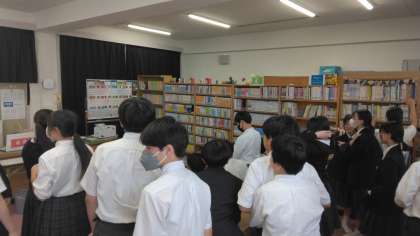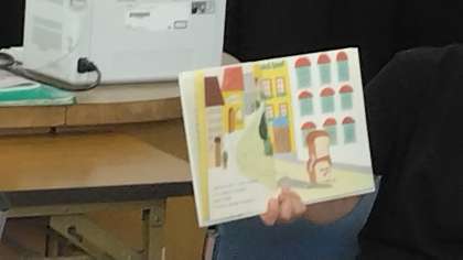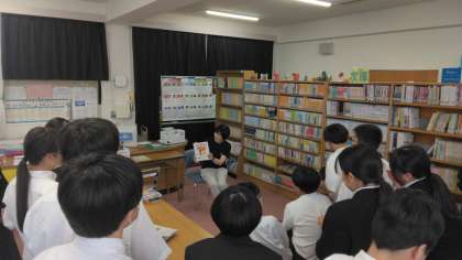 今日はたくさんの生徒が夢中になって「パンどろぼう」の読み聞かせを聞いていました。