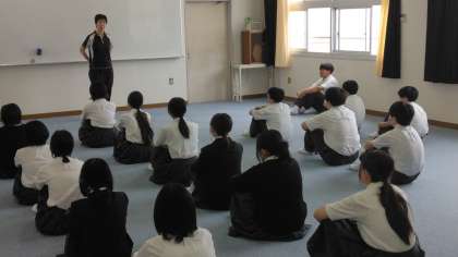 2年生は午後に職場体験のお礼訪問に行きます。学年の先生からは、集会で、社会人になってから大切なことについてのお話を交えながら、これまでの学習を振り返るお話がありました。