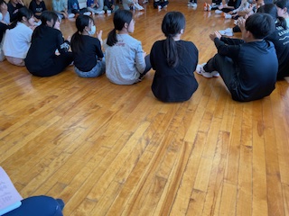 手を隣の人が叩いたら叩くことで、全員が繋ぐゲームです。