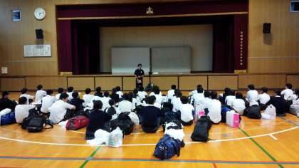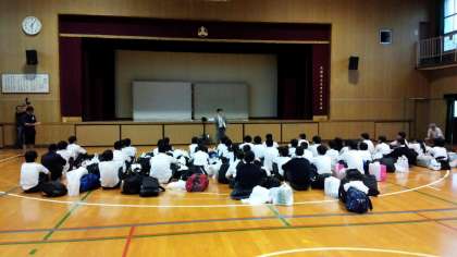 体育館で諸連絡を行いました。