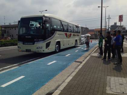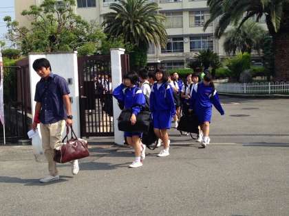 予定通り9:00に学校を出発しました。(保護者、先生のお見送りの中)