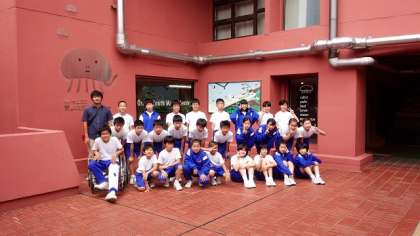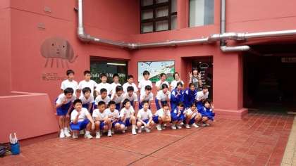 浜辺へ移動する前に、学級写真撮影