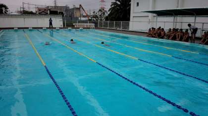 写真は、上:女子50m平泳ぎ  下:男子50m平泳ぎです。