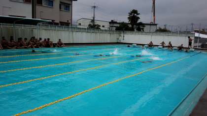 水泳大会のリレー種目の最後は、男女混合100mメドレーリレーです。