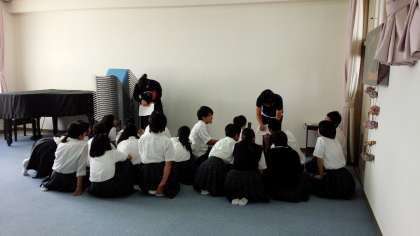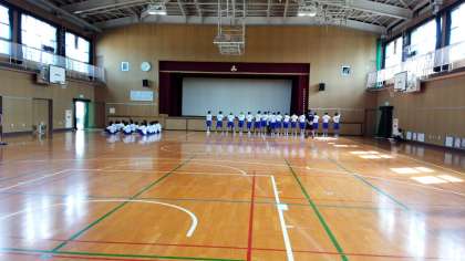 2年生は、体育館で集団行動の練習です。(写真:中)