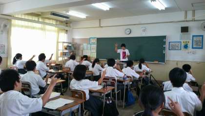 今日(9月15日)の6限目に、1年生は各学級で文化発表会での舞台発表の取り組み練習をしました。