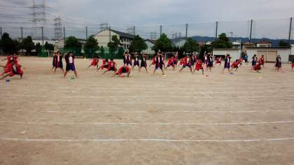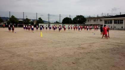 9月15日(木)6限、3年生は運動場で体育大会の学年演技(六中ソーラン)の練習をしました。ハッピを着て、通しの練習です。