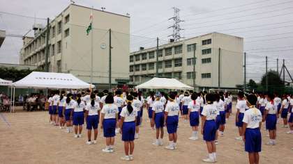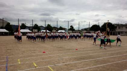 開会式では、開会の言葉、国歌斉唱・校歌斉唱、学校長あいさつと続きました。
