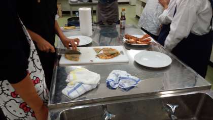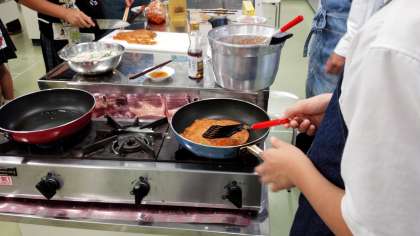 今日(10月17日)の放課後、民族学級交流会でチヂミを焼きました。