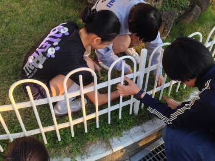 本日(11月2日)の放課後、芝生の手入れをしました。