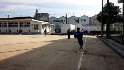5限目は、男子が運動場でキックベース。女子が体育館でドッチボールを行い、6限目は、種目を交替して行いました。