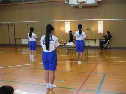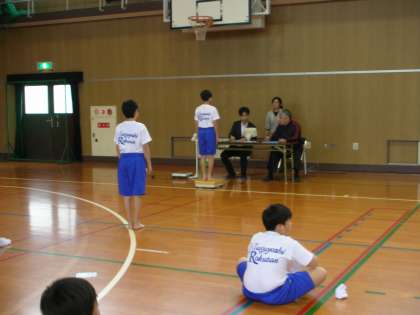 体育館では学年ごとに、身長・体重の2測定と視力検査。