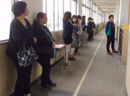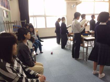3年2組の数学の様子を保護者の皆さんが廊下から。
