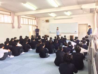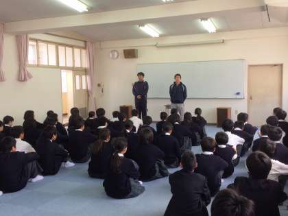 先生たちからは、これからもこの調子で頑張って欲しいこと。中だるみになりがちな2年生、自覚を持って行動して欲しいことなどのお話がありました。