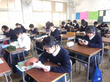 8時25分の予鈴で全員が着席して本を読み始めます。読書を通して様々な知識や豊かな感性を身につけて欲しいものです。
