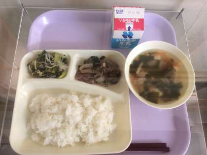 おかずは、プルコギ、豆腐のスープ、チンゲンサイともやしの甘酢あえです。