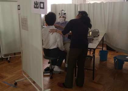 校医さんに耳・鼻・のどを順に診てもらいましたが、生徒の態度がよく非常にスムーズに進みました。