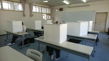 放課後の視聴覚室で「元気アップ中間テスト前学習会」を行いました。