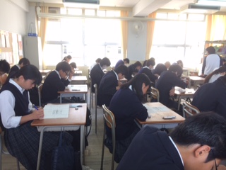 英語のテストは各学年ともリスニングがありました。英語を聴いて書く力が求められています。