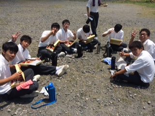 しっかり体をうごかしてお腹はぺこぺこ。みんなで外で食べるお弁当は格別です。