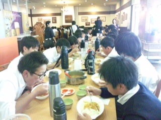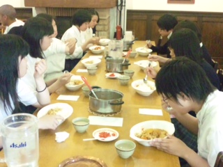 昼食はカレーライス。たちまち平らげおかわりの列が。