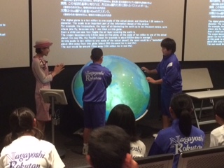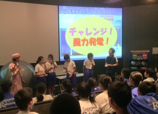 息を吹き付けて風力発電を吹き付け体験したり、触れる地球「デジタル地球儀」を使い温暖化など地球環境について考えました。