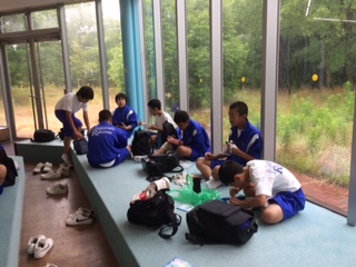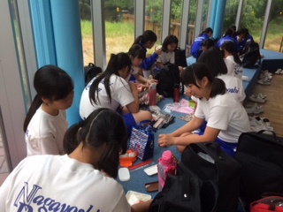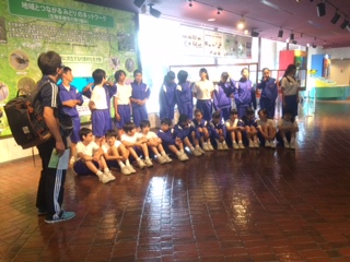 食後、学級写真を撮影。12:57、海洋センターに向けて出発しました。
