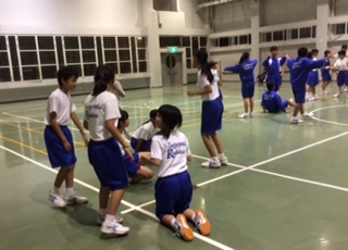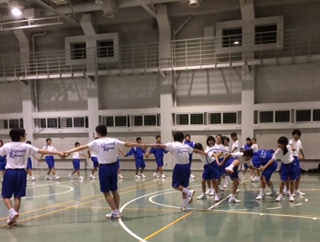 宇宙人鬼ごっこ、進化論、トラスト・ウェーブ、フープ知恵の輪の4種目。どれもクラスのみんなが知恵を出し合い、協力しなければうまくいきません。
