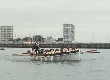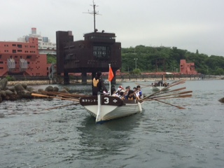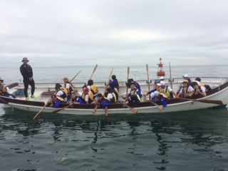 最初は調子良かったのですが、沖に出るとオールも乱れて船酔いが続出。予定より早く帰港することになりました。