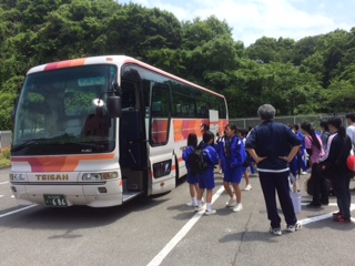 バスに乗車し、予定より10分早い13:20に出発しました。学校着も3時前になりそうです。