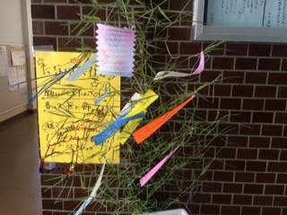 玄関ホールに笹が出現。短冊も用意してあるので、自由に願いを書いて飾ります。