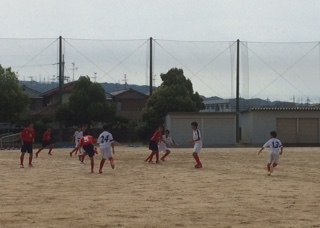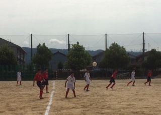 暑さに負けず運動場ではサッカー部が練習試合です。