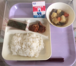 みそかつ、じゃがいもと野菜の煮物、焼きのりです。