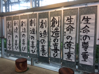 「咲くやこの花館」では、美術部、家庭科、書写などの展示発表が行われています。