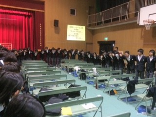 3年生の合唱コンクール。出演前に43期生全員で円陣を組んで気合いを入れてスタート。