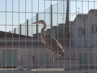 高安山や大和川が近い本校です。色んな鳥たちがやってきますが、今朝はアオサギが体育館の上で生徒たちを迎えていました。