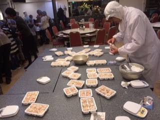 今年は難波「蓬莱本館」で豚まんとシュウマイの手づくり体験です。社長さんみずからが講師で登場。簡単そうに説明してもらいましたが、やってみると意外に難しい!味は変わりませんとなぐさめられました。
