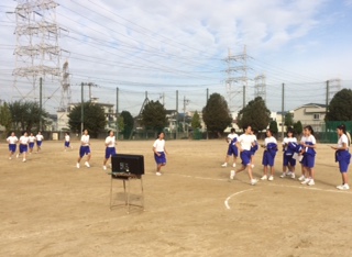 5限の2年生女子の体育の授業は運動場では長距離走です。