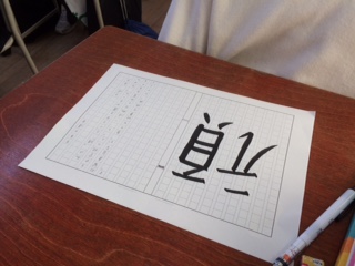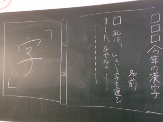 自分が考える「今年の漢字」を決め、選んだ理由を書きます。漢字は筆ペンでていねいに。