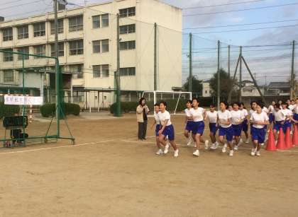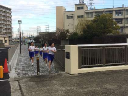 女子は3km、男子は5kmを走ります。体育の授業で練習を積み重ね、一人一人の目標タイムをめざしました。