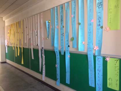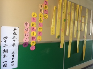 3年生校舎2階廊下に「手紙」の歌詞が登場しました。