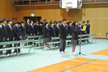 在校生の「お別れの言葉」に続いて、卒業生代表の「お別れのあいさつ」です。代表のYさん、Oさんから、3年間の思い出と在校生への感謝と後を託す言葉がありました。