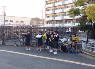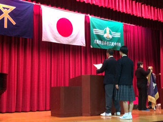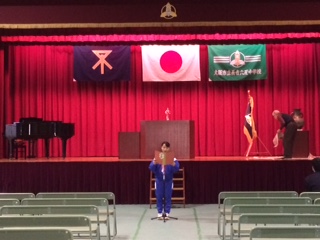 完成した式場では、答辞、送辞、記念品授受の練習が行われています。