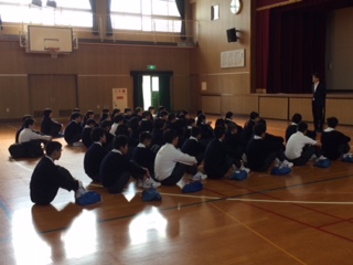 体育館では3年生の学年集会。