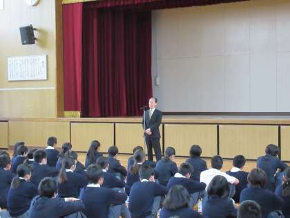 昨日の全国学力・学習状況調査のため、定例の全校集会を本日実施しました。